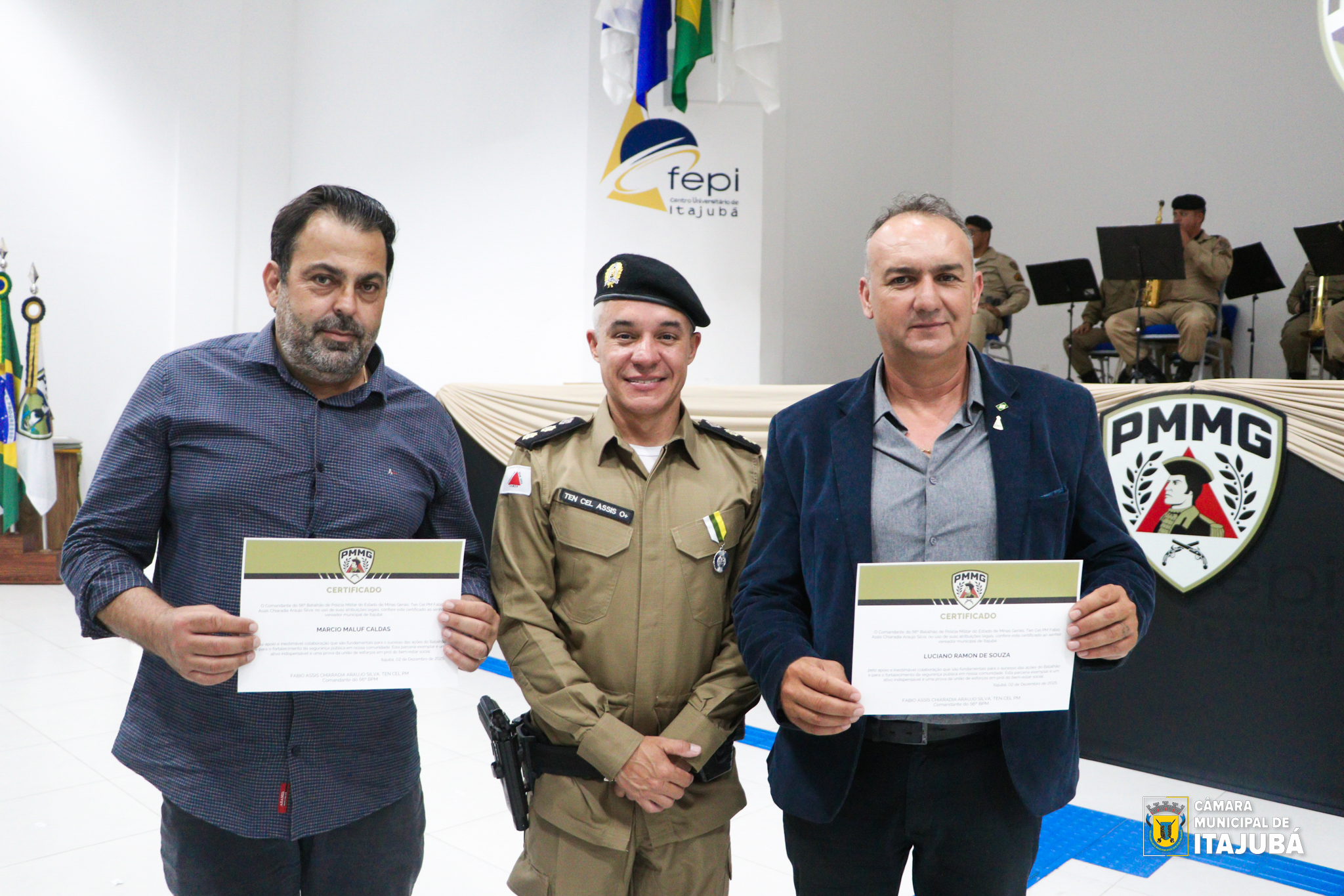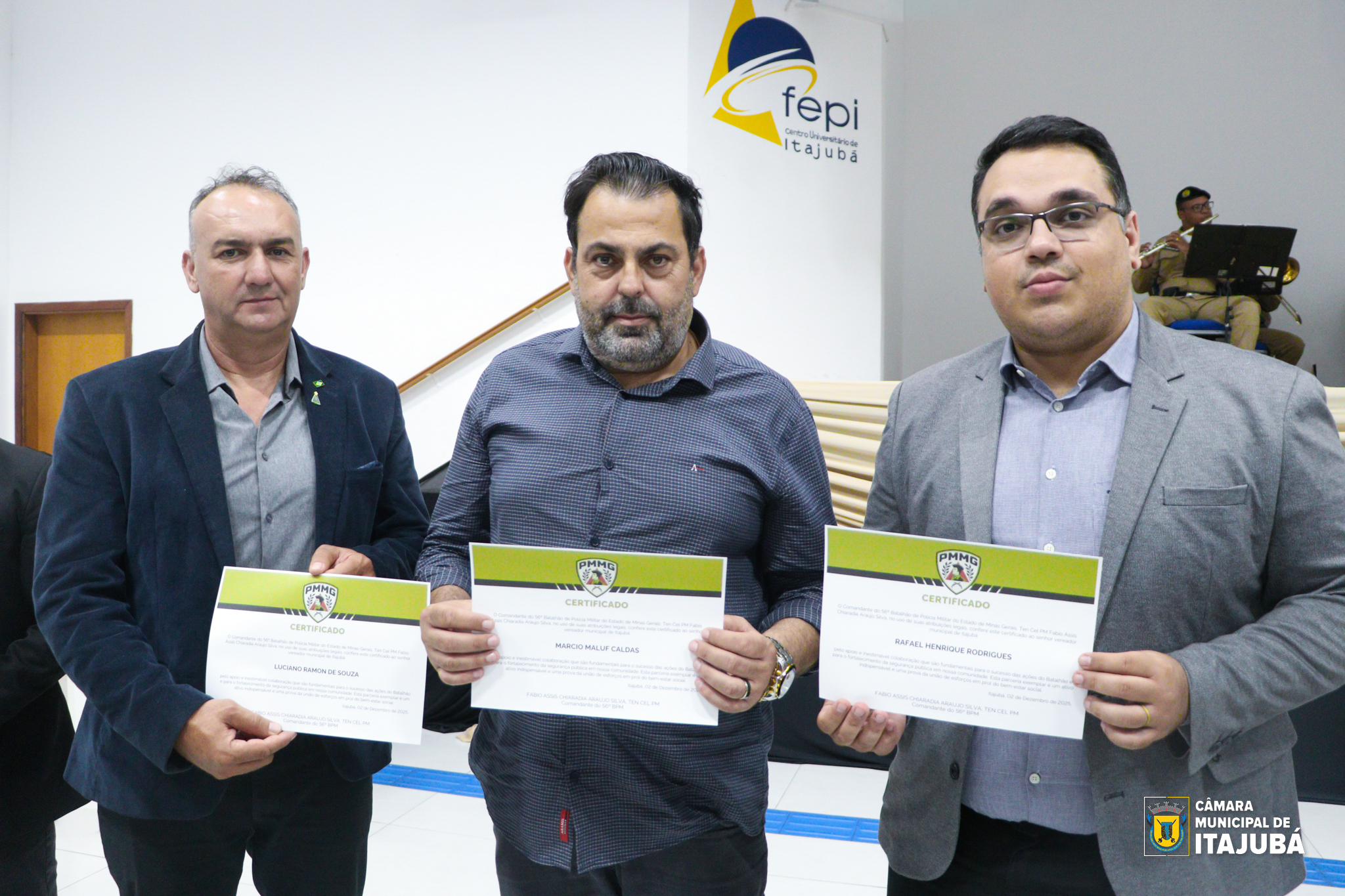 Representando a Câmara Municipal de Itajubá, foram homenageados os vereadores Márcio Caldas (PSDB), Luciano da Farmácia (PL) e Rafael Rodrigues (PL), reforçando a gratidão da sociedade a todos que caminham ao lado da Polícia Militar.