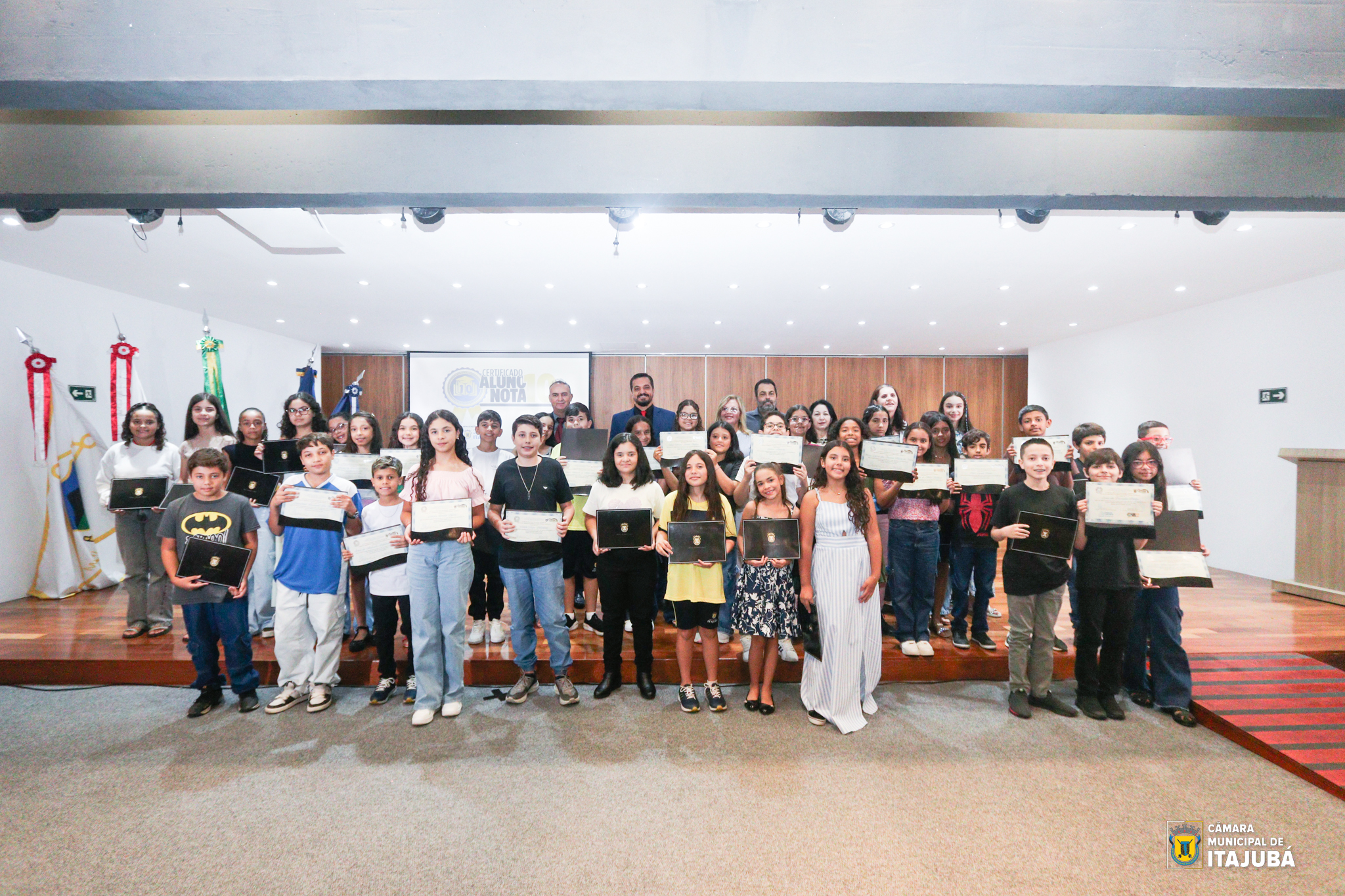 O reconhecimento ao esforço, à dedicação e ao desempenho acadêmico marcou a noite da última segunda-feira, 24 de fevereiro. Em uma Sessão Solene realizada no auditório da BIM – Universidade Federal de Itajubá (UNIFEI), a Câmara Municipal de Itajubá entregou o certificado “Aluno Nota 10 2025” a 42 estudantes do 5º ano do Ensino Fundamental da rede municipal de ensino.