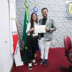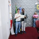 Para encerrar a solenidade, foi entregue o certificado ao vencedor do concurso “Como vejo minha cidade”, o estudante Pedro Werdini Pereira, pela fotografia que retrata a pista de skate do Parque Municipal.